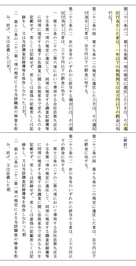 改正前は第21条に複数の違反類型が含まれていましたが、改正後は違反類型ごとに独立した条文となり、